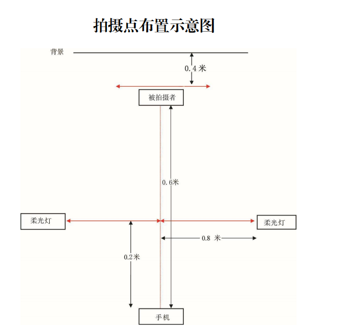 1. 光线:柔光灯拍摄情况下,建议两侧亮度均衡(不宜过亮);自然光拍摄情况下,建议面向窗户(避免阳光直射,不建议晚间拍摄),保证面部光线均匀,无明显可见或不对称的高光、光斑,无红眼。
